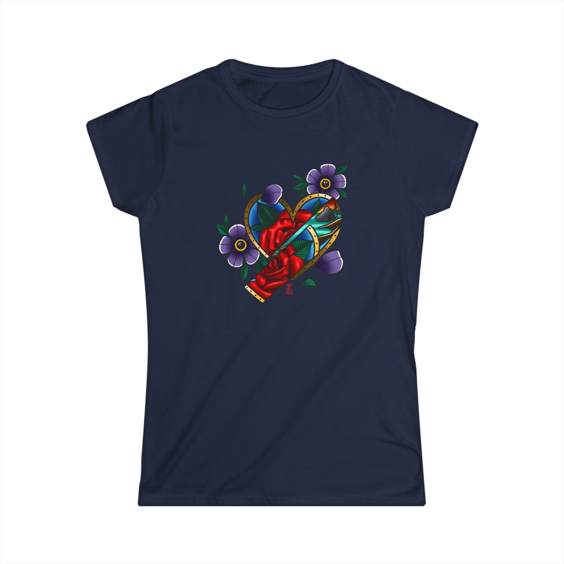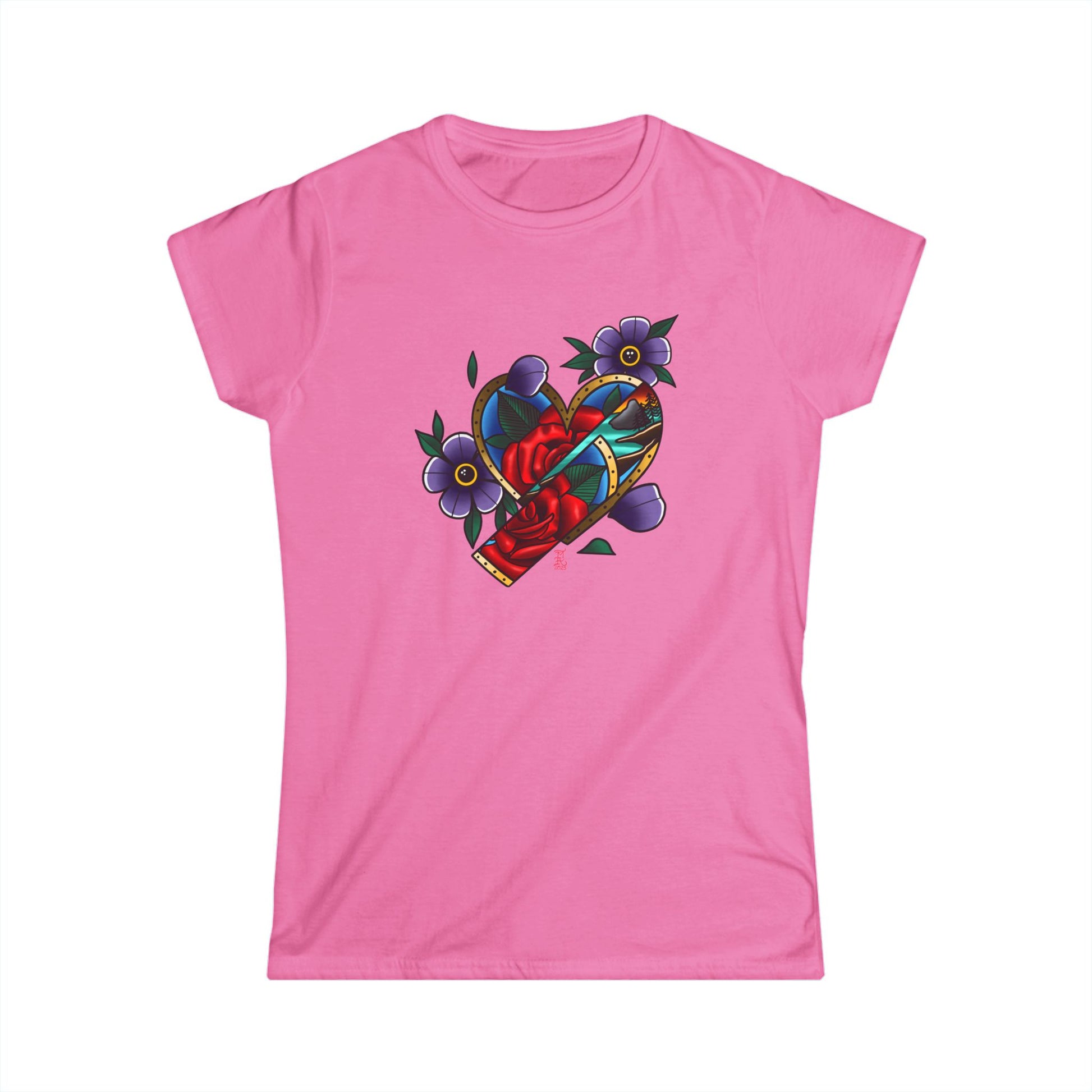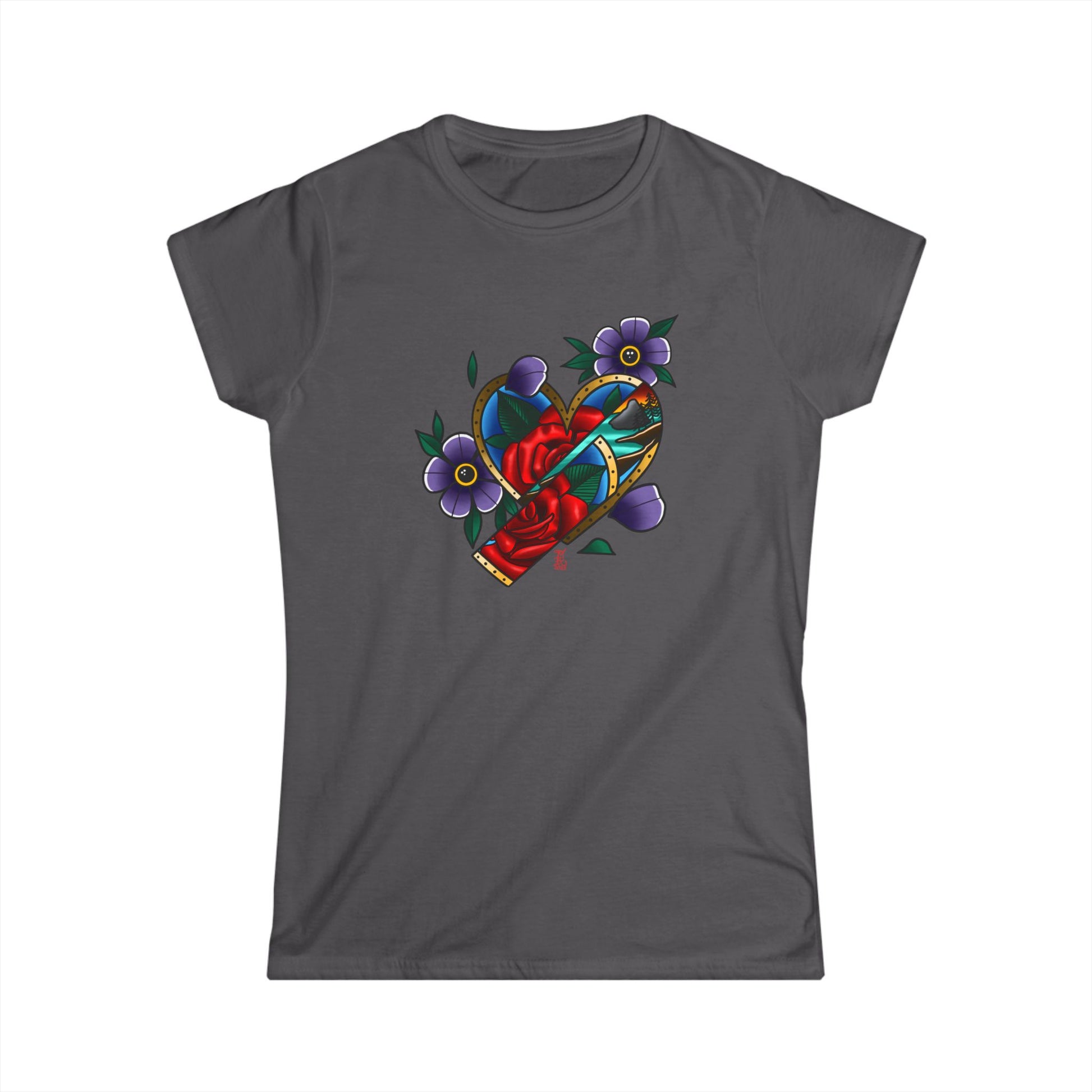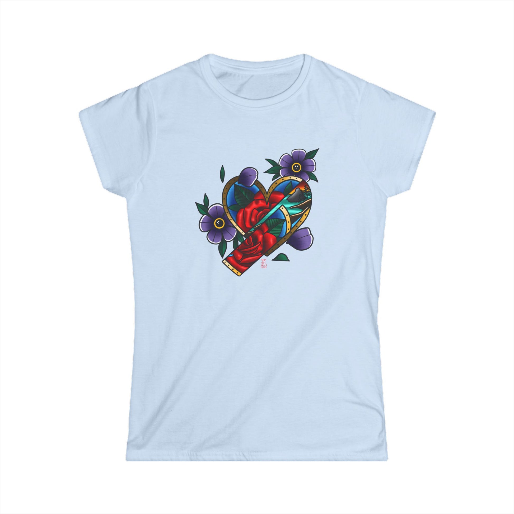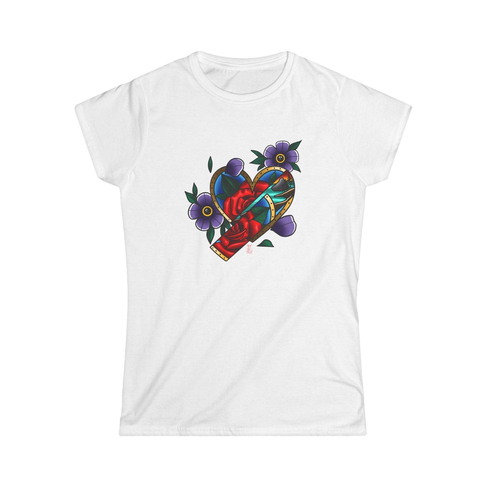 The woman's softstyle tee is a more feminine take on the classic tee. The sleeves are shortened to reveal some shoulder. The fabric is 100% ringspun cotton for all solid colors. The shoulders are taped with twill to prolong durability. The collar seam is reinforced with ribbed knitting.